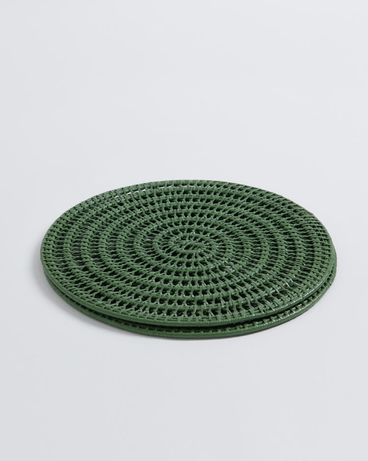 Made of Burmese rattan, these charger mats are made the traditional way: slowly. They're a good size for a serving mat in the middle of the table, or as a big placemat under your plate.