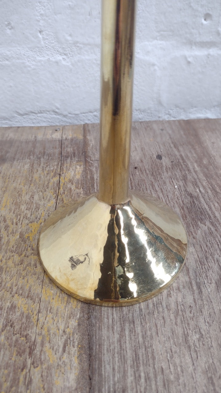 Tall brass candlestick hammered-brass antiqued finish.