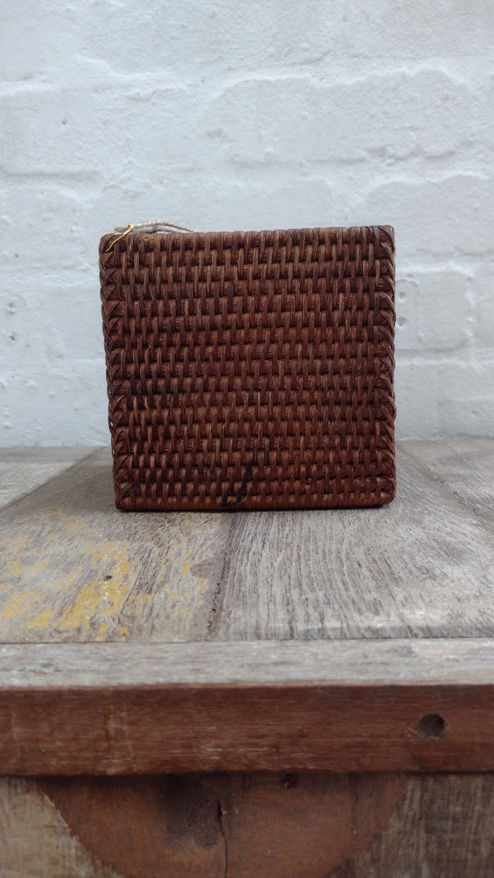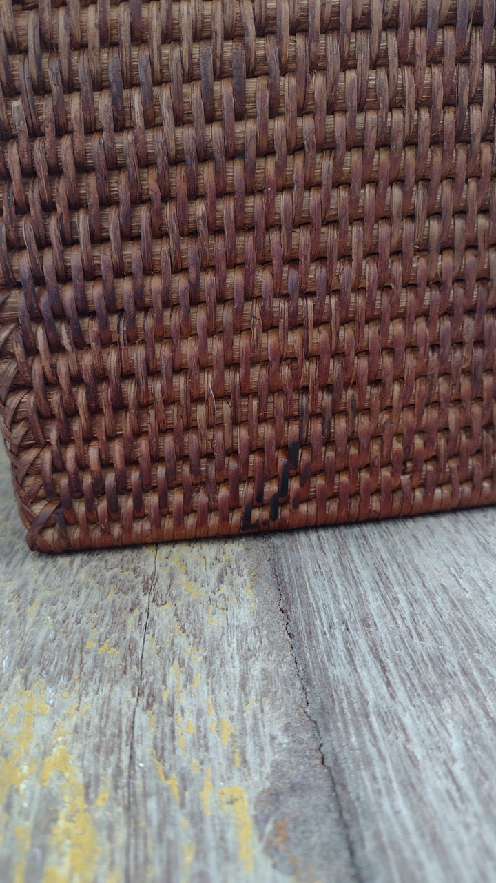 Wonky Heho Rattan Tissue Box Cover | Square | Brown